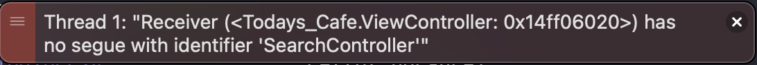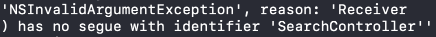 [Step 2] 위에서의 Identifier명과 perfomsegue의 변수명을 일치하게 적었는지 확인