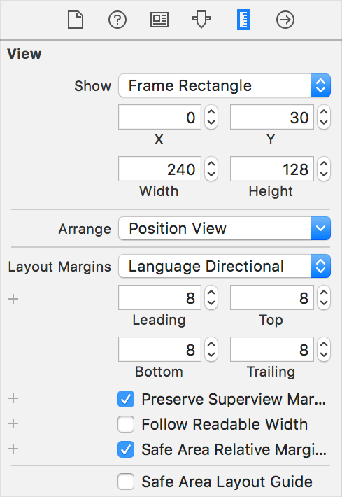UIKit provides default layout margins for each view, but you can change the default values to values that are more appropriate for your view. To change a view’s margin values, update the view’s directionalLayoutMargins property. (You can also use the Size inspector to set the value of that property at design time. In the Layout Margins section, choose the Language Directional option and enter the margin values for each of the view’s edges, as shown in Figure 3.)